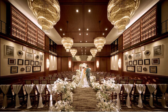 株式会社ベストブライダル(本社:東京都港区、代表取締役:塚田正之)が運営する、ストリングスホテル 名古屋(所在地:愛知県名古屋市中村区平池町4-60-7 )では、本格ゴシック様式で色鮮やかなステンドグラスが輝くアートグレイス大聖堂、天然石や木のぬくもりが印象的な建築美が魅力のマグノリアチャペルに加えて、世界的にも有名なニューヨークの公共図書館にインスピレーションを受けたデザイナーズチャペル「The Library(ザ ライブラリー)」が誕生。2025年10月より本番挙式がスタート。