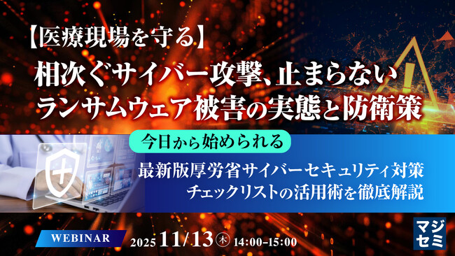 本セミナーでは、過去の事案説明と最新の「医療機関におけるサイバーセキュリティ対策チェックリスト」をもとに、セキュリティ対策のプライオリティ設定と対策ロードマップ、具体的なソリューションについて解説します。