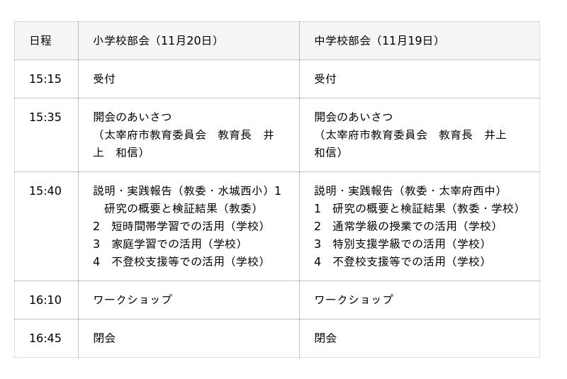 - 対象: 太宰府市立小中学校の教職員(別途各校への案内済み)