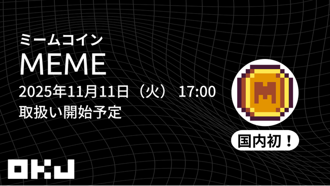 当社は、OKJ(暗号資産取引所)にて、『ミームコイン(MEME)』を、2025年11月11日に取扱い開始することをお知らせいたします。これにより、OKJは、50種類の暗号資産を取扱うことになります。