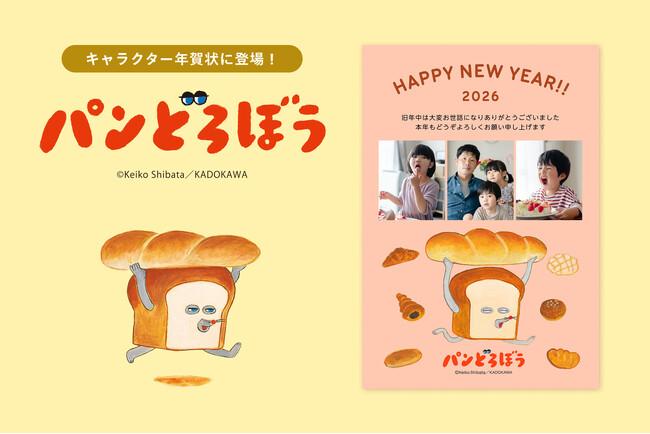 ネットプリントサービスを提供する株式会社しまうまプリント(本社:東京都新宿区、代表取締役社長:高橋 洋一郎、以下「しまうまプリント」)は、PC/Android/iPhoneから簡単に年賀状印刷の注文ができる「しまうま年賀状2026」年賀状プリントサービスにおいて、「パンどろぼう」のデザインの販売を開始いたしました。