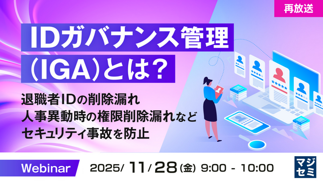 本セミナーでは、IDのライフサイクル管理やアクセス権限の管理を行う、「IDガバナンス管理(IGA)」について、わかりやすく解説します。