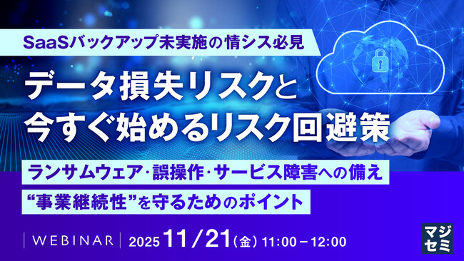 本セミナーは、Microsoft 365、Google Workspace、Slack、HubSpot、Salesforce、BoxなどのSaaSサービスを利用しているシステム担当者や、データ損失に対して不安を感じている方、またSaaS側の障害による事業継続性の確保を検討している方などに特におすすめです。