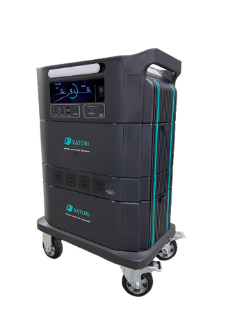 今回、レンタルを開始する「SATORICOREアクティオ専用仕様」は、この課題を解決するために開発された総容量5,357Whの当社独自仕様です。さまざまな環境下でも安心して利用できる大容量バッテリーは、現場での使いやすさを徹底的に追求しました。大型キャスターによるスムーズな移動を実現し、専用カバーを装着すれば多少の小雨や粉塵にも対応可能です。さらに、スマートフォンアプリにて残量を確認することが可能で、現場の作業効率を一層高めます。バッテリーはカセット式を採用し、ケーブルレスでの増設が可能で、必要な容量を必要なときに簡単に追加できます。