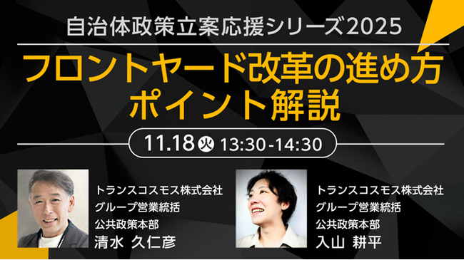 トランスコスモスは、オンラインセミナー自治体政策立案応援シリーズ2025フロントヤード改革の進め方 ポイント解説を11月18日(火)に開催します。