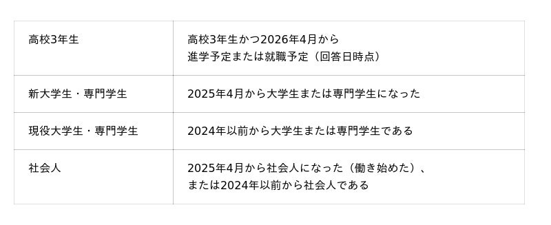 本調査では対象者を以下のように区分し、結果をまとめております。