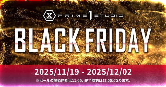 2025年11月19日(水)11:00から12月2日(火)17:00まで、株式会社プライム1スタジオは『BLACK FRIDAY SALE』を公式オンラインストアにて開催いたします。世界中のコレクターに向け、人気のスタチューを最大60%OFFのスペシャルプライスでご提供。ビッグセールとして、多彩なジャンルから選りすぐりのアイテムをご用意いたしました。