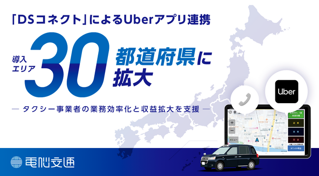 タクシー業界のDXを推進する株式会社電脳交通(本社:徳島県徳島市、代表取締役社長:近藤 洋祐、以下「電脳交通」) は、電脳交通のクラウド型タクシー配車システム「DS」とタクシーアプリ「Uberアプリ」のシステム連携の導入エリアが、2025年10月30日に30都道府県に拡大したことをお知らせします。