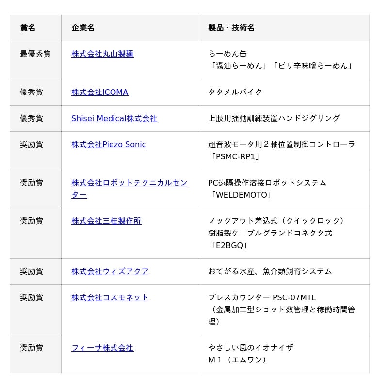37回目となる今回は、厳正なる審査の結果9社の企業が入賞となりました。入賞企業は令和7年12月12日(金)に開催される展示会「Meet New Solution in TIB 2025」に出展予定となっております。ご来場お待ちしております!