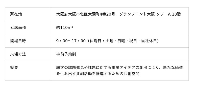 今回開設した「Serendie Street Osaka」は、母体となる「Serendie Street Yokohama」のコンセプトを踏襲しつつコンパクトにまとめた共創空間です。当社のデジタル基盤「Serendie(R)(セレンディ)」を活用した価値共創プログラム(※2)により、主に西日本エリアの顧客との対話を通じた課題に関するヒアリングや課題に関連するデータ・アセットの共有などを行い、事業アイデア検討などの共創企画を提案することで、「Serendie Street Yokohama」での共創活動へとつなげる機能を担います。