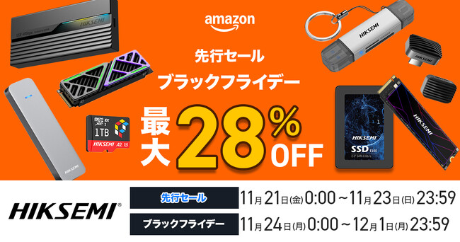 株式会社Taurus(本社:東京都、HIKSEMI日本公式代理店)は、2025年11月24日(月)~12月1日(月)に開催される「Amazonブラックフライデー」にて、HIKSEMIの超小型ポータブルSSD「SYNC C PRO MINI PSSD」をはじめとした人気製品を、最大28%OFFの特別価格で販売いたします。