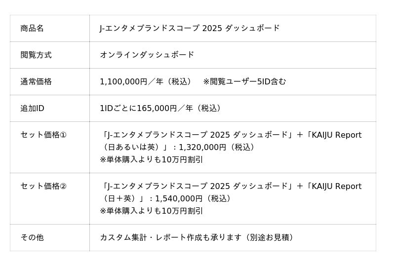 ※「J-エンタメブランドスコープ 2025 ダッシュボード」とまとめてご購入いただくと、割引価格でお買い求めいただけます。