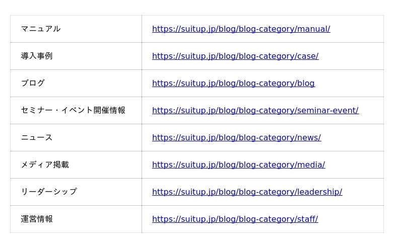 「スーツアップ・ブログ」のカテゴリーは、以下の8つに分類されており、読者の方にもかんたんに見つけられるようになっています。