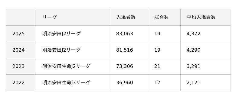 このたび、いわきFCは、本日行われました2025明治安田J2リーグ 第37節 レノファ山口FC戦において、5,013名のお客様にご来場いただき、年間入場者数が過去最多となる83,063名を記録いたしましたので、お知らせいたします。