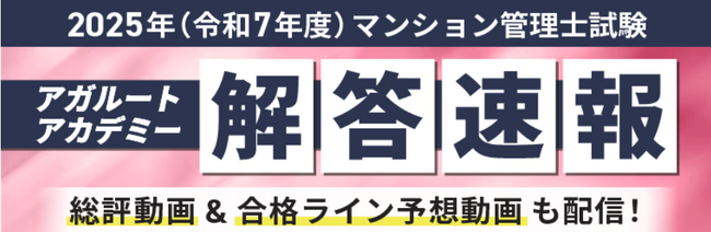 株式会社アガルート(本社:東京都新宿区、代表取締役:岩崎 北斗)が運営する「アガルートアカデミー」は、マンション管理士試験当日の11月30日(日)に 「解答速報」を無料で実施いたします。
