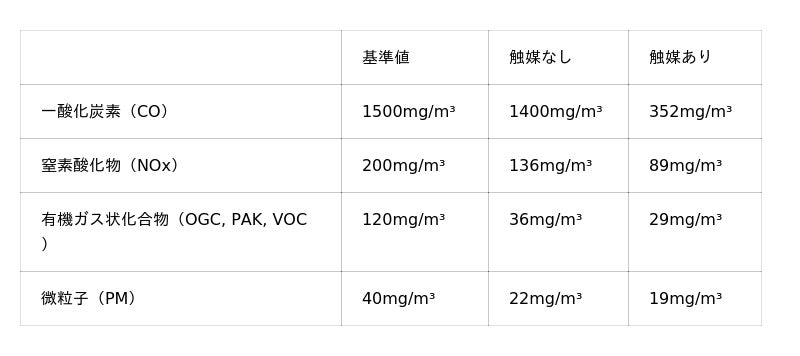 新触媒の搭載により、各種排出値が基準値を大きく下回り、