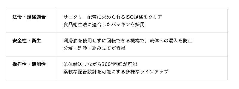 【大手の食品工場や医薬品製造工場で採用されるTBGのスイベルジョイント】