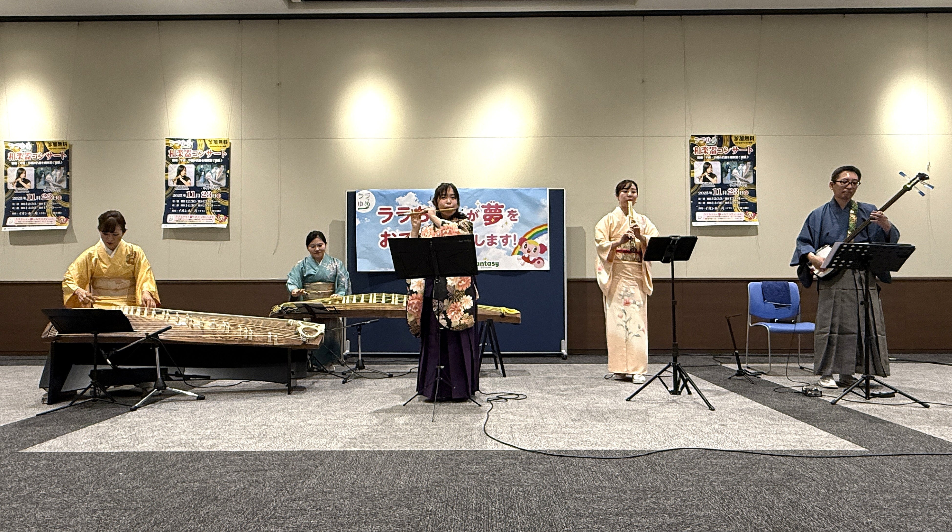 株式会社イオンファンタジー(代表取締役社長:藤原徳也、所在地:千葉県千葉市、以下、当社)は、「夢」を応援する社会貢献活動「ララゆめ ~ララちゃんが夢をおてつだいします!~」において、イオンモール川口(埼玉県川口市)にご協力をいただき、11月23日(日)、イオンモール川口のイオンホールにて、埼玉県越谷市在住のみことさん(13歳)の夢「和楽器の魅力を伝える演奏会をひらきたい」を実現いたしました。