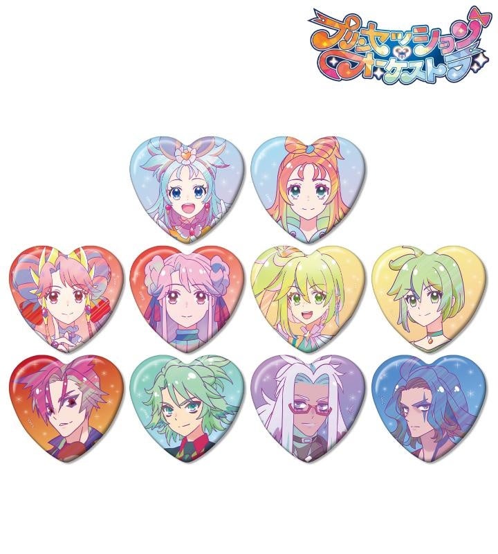 プリンセス・リップル、空野 みなも、プリンセス・ジール、識辺 かがり、プリンセス・ミーティア、一条 ながせ、カリスト、ギータ、ベス、ドランのイラストを新たなタッチで魅力的に表現し、ハート型の缶バッジに仕上げました。