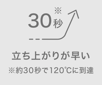 電源ONから約30秒で120℃に到達し、設定温度に達すると音でお知らせしてくれます。忙しい朝でもすぐに使い始められ、毎朝の時間を無駄にしません。