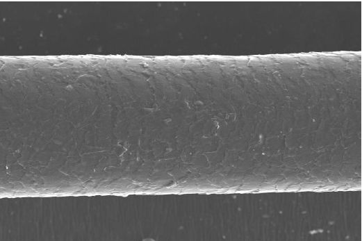 <新製品を使用し140℃でスタイリングした後の髪の毛(拡大率2000倍)>(※1)