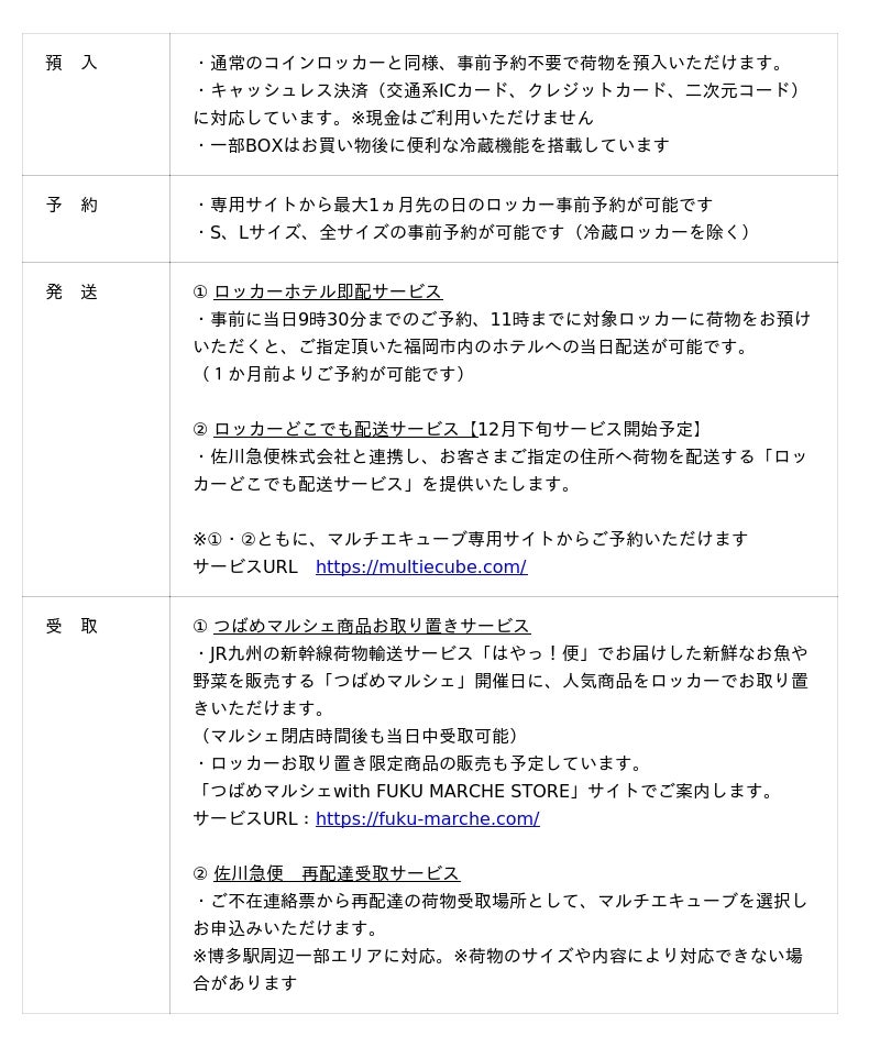 2 多機能ロッカー「マルチエキューブ」博多駅でのサービス内容