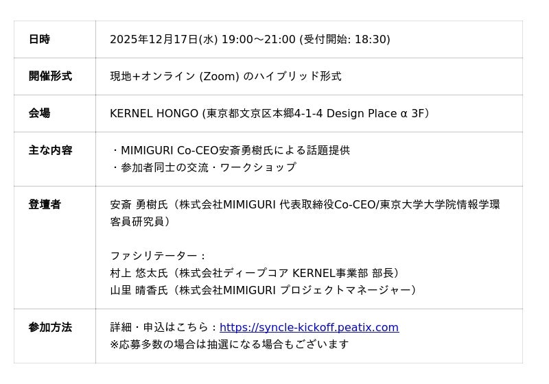詳細・申込はこちら:https://syncle-kickoff.peatix.com