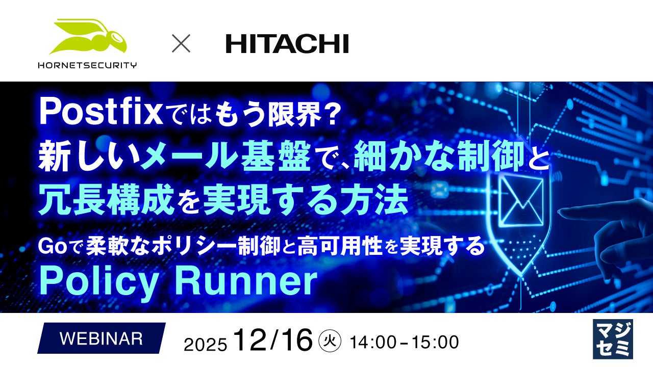 マジセミ株式会社は「Postfixではもう限界?新しいメール基盤で、細かな制御と冗長構成を実現する方法」というテーマのウェビナーを開催します。