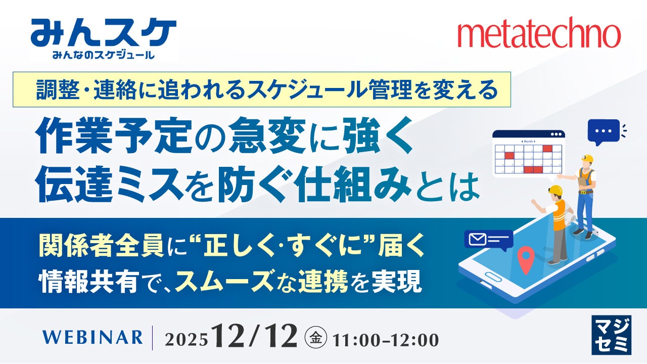 本セミナーでは、作業予定の共有や人員調整、急な変更対応など、現場特有のスケジュール管理に特化した「作業員配置アプリ『みんスケ』」をご紹介します。