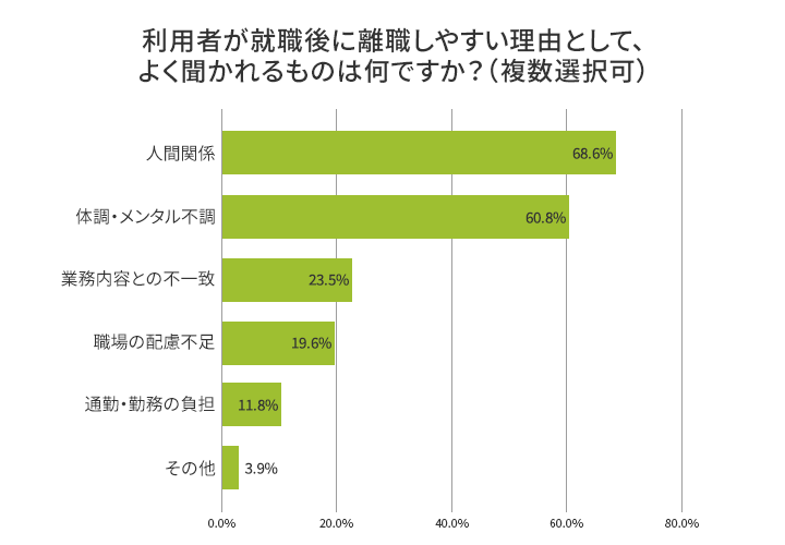 LITALICO仕事ナビ、就労支援事業所へアンケート調査。障害者雇用の離職理由、約7割が「人間関係」に起因
