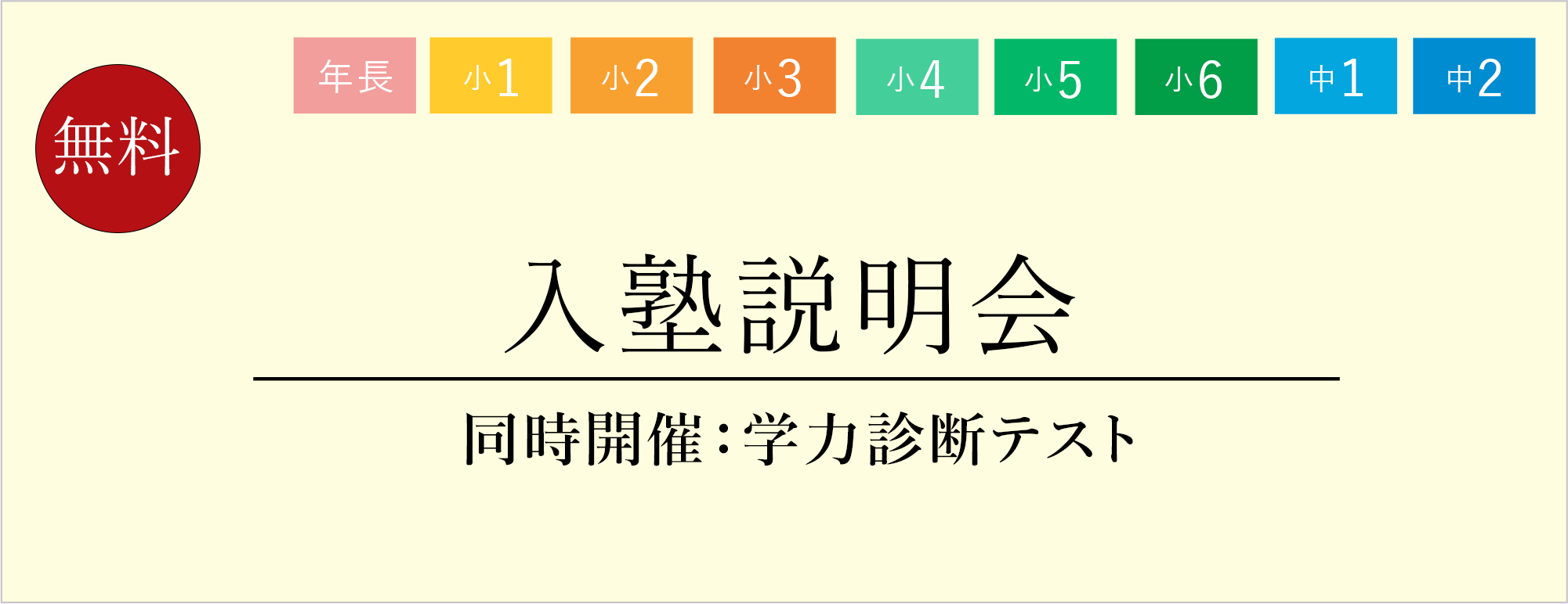 ※入塾説明会の間、お子さまは学力診断テストを受験します。