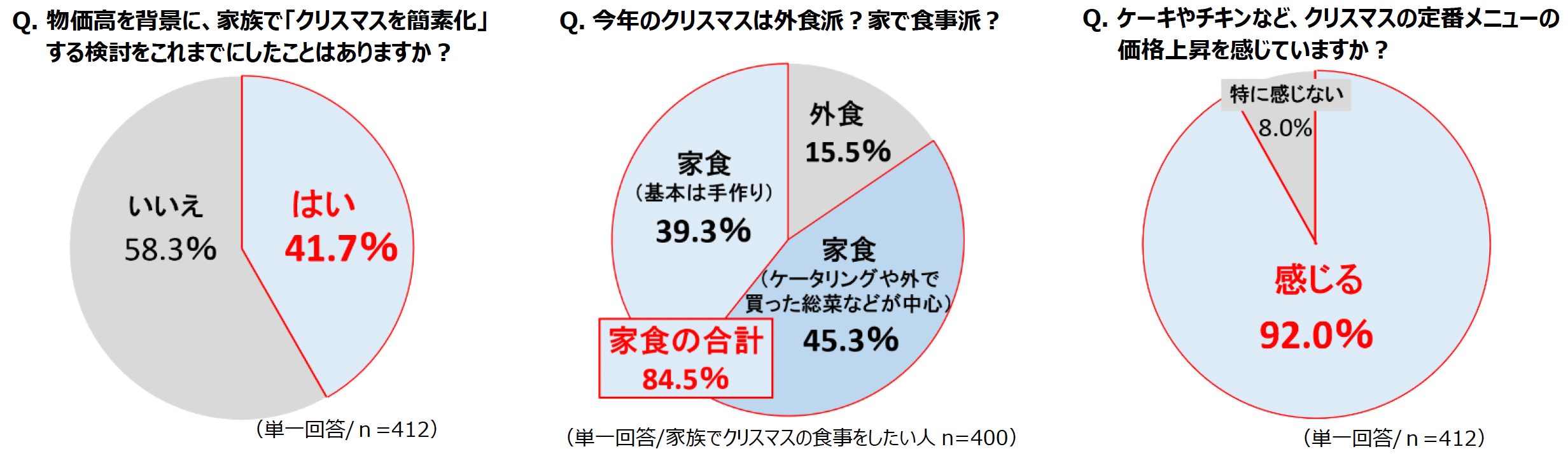 ■保護者が回答! 今年のクリスマスの食事は、「家食」が約8割ケーキ・チキンなど定番メニューの価格上昇は約9割が実感