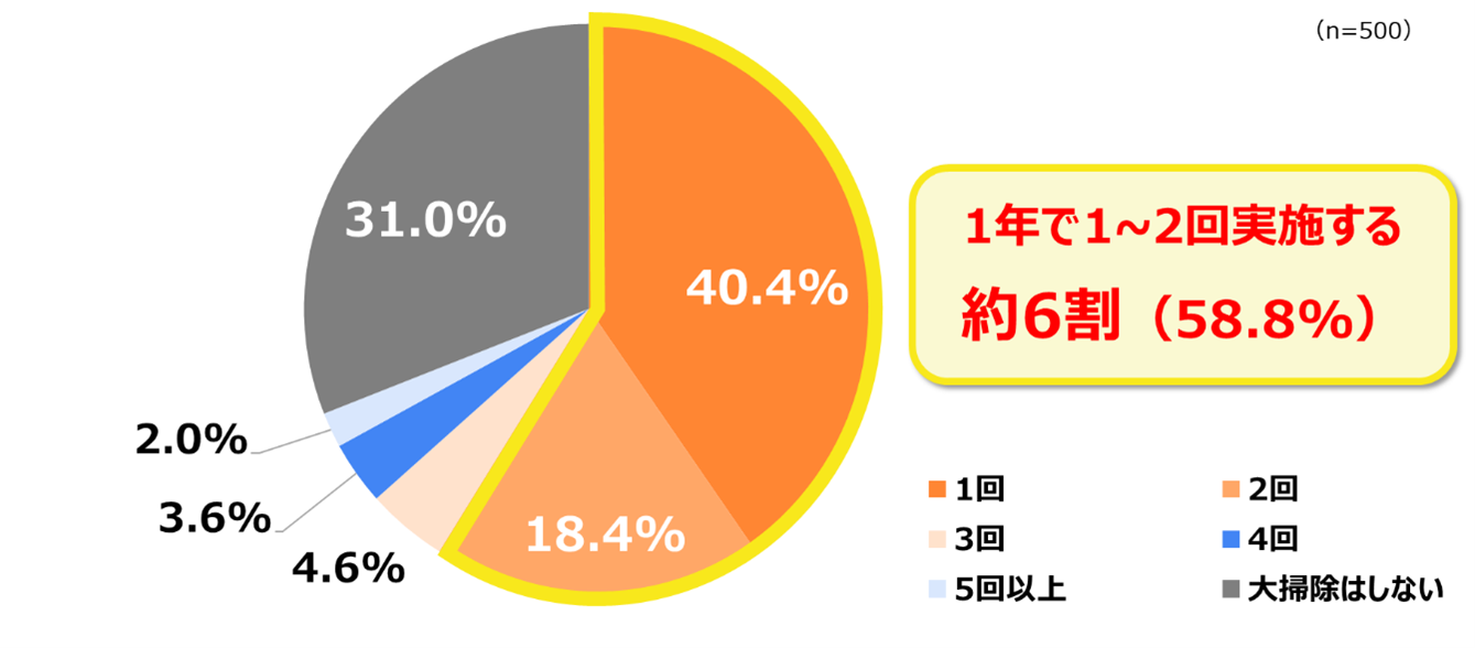 ◆年末年始がトップ、大掃除の実施頻度は「年1~2回」が約6割
