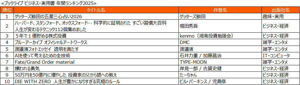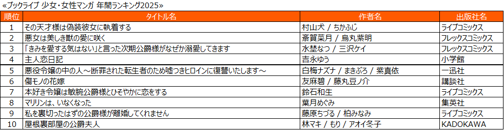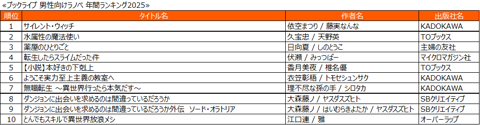 ■ブックライブ年間ランキング2025 ジャンル別ランキングTOP10