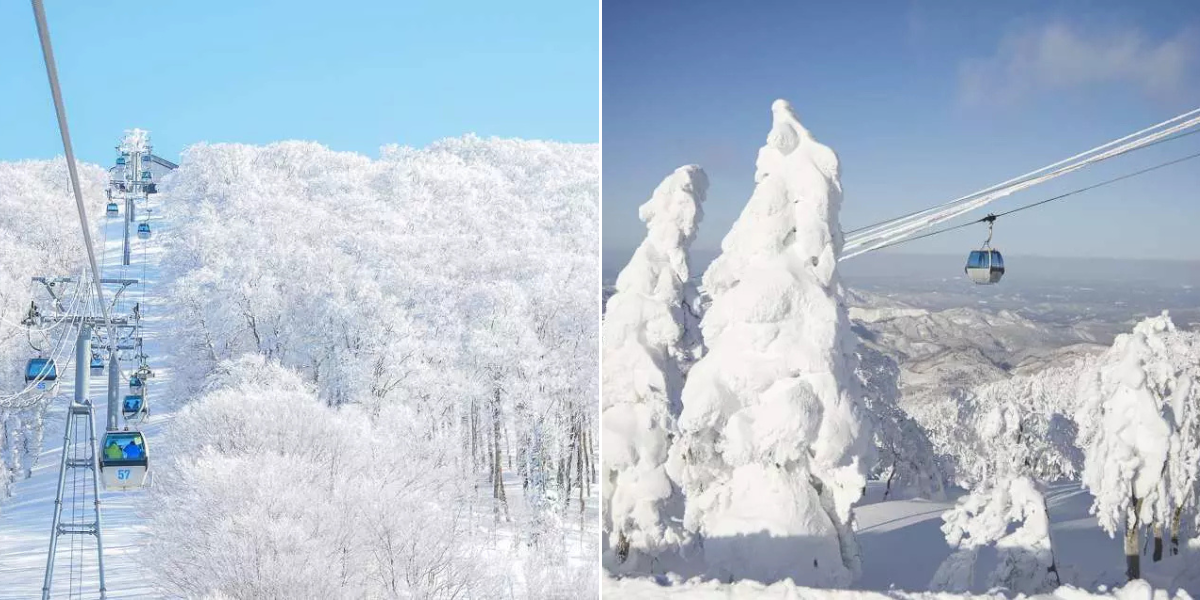 白銀の樹氷を眺めながら滑走できる幻想的なスキーエリア。