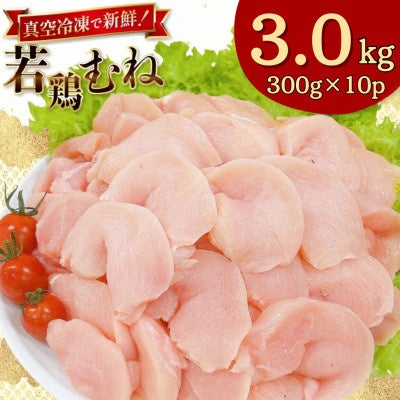 宮崎県産 若鶏 皮なし むね切身 300g 10p 計3kg セット(日向市)[宮崎県日向市] 寄付金額:12,000円