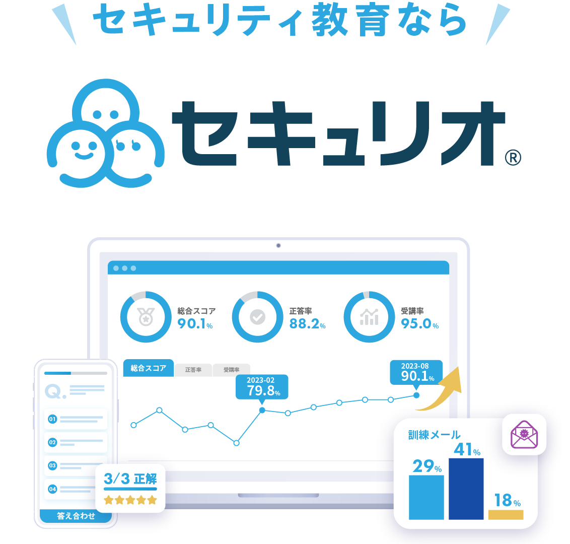 「セキュリオ」は、セキュリティ教育をだれでもかんたんに行うことができるクラウドサービスです。