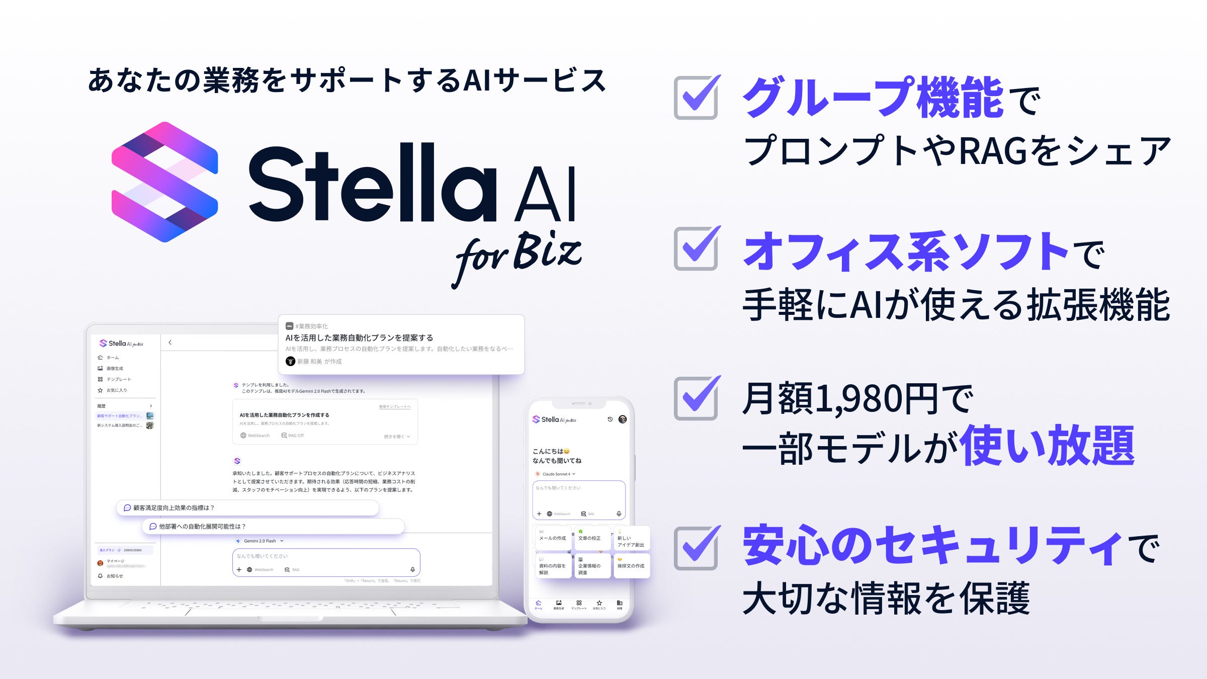 * サービスの詳細はサービスサイトをご確認ください。(https://lp.stella-ai.net/biz/)
