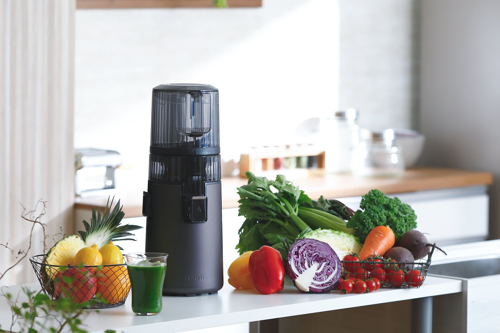 [画像5: https://prcdn.freetls.fastly.net/release_image/16251/78/16251-78-e96d83301e170c9aebe4bc983cd25590-500x625.jpg?width=536&quality=85%2C75&format=jpeg&auto=webp&fit=bounds&bg-color=fff ]ヒューロムのコールドプレスジューサーは、独自技術の低速搾汁方式(スロースクイージング テクノロジー)で搾るため、熱に弱い酵素やビタミンを壊しにくく、素材本来の風味や栄養が詰まった生ジュースを作ることができます。