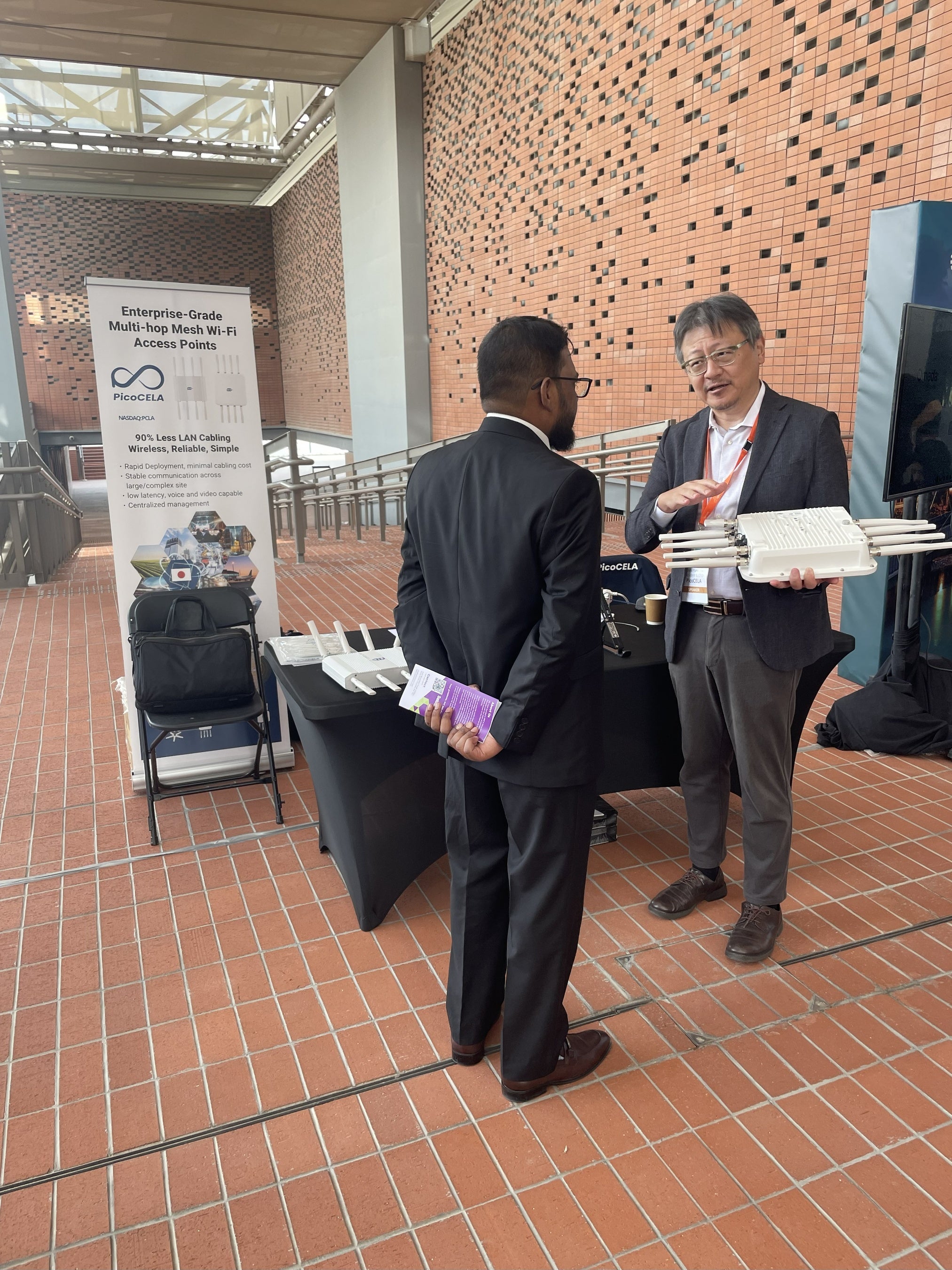 PicoCELAは、有線LANの設置が困難な場所や一時的な利用など、様々な環境で安定した大規模Wi-Fi空間を構築する世界最高レベルの無線メッシュ技術を提供しています。本イベントへの出展を通じ、当社の無線メッシュ技術を国内外の産業界が推進するデジタルトランスフォーメーション(DX)に不可欠な基盤として展開することを目指します。今後も、エッジコンピューティングと無線メッシュネットワークを融合させたユニークな技術で、国内外の工場、倉庫、プラント、建設現場、公共インフラなど、幅広い分野での活用を推進し、持続可能な社会の発展に貢献してまいります。