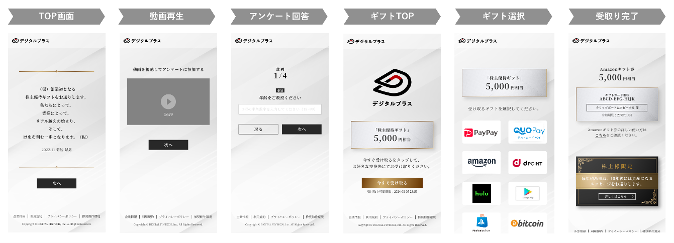 当社は「株主優待ギフト」を、注力領域である「支払いのDX(金融)領域」と位置づけし、株主の皆様の利便性向上とデジタルギフト(R)の利用拡大に向けて、邁進しております。