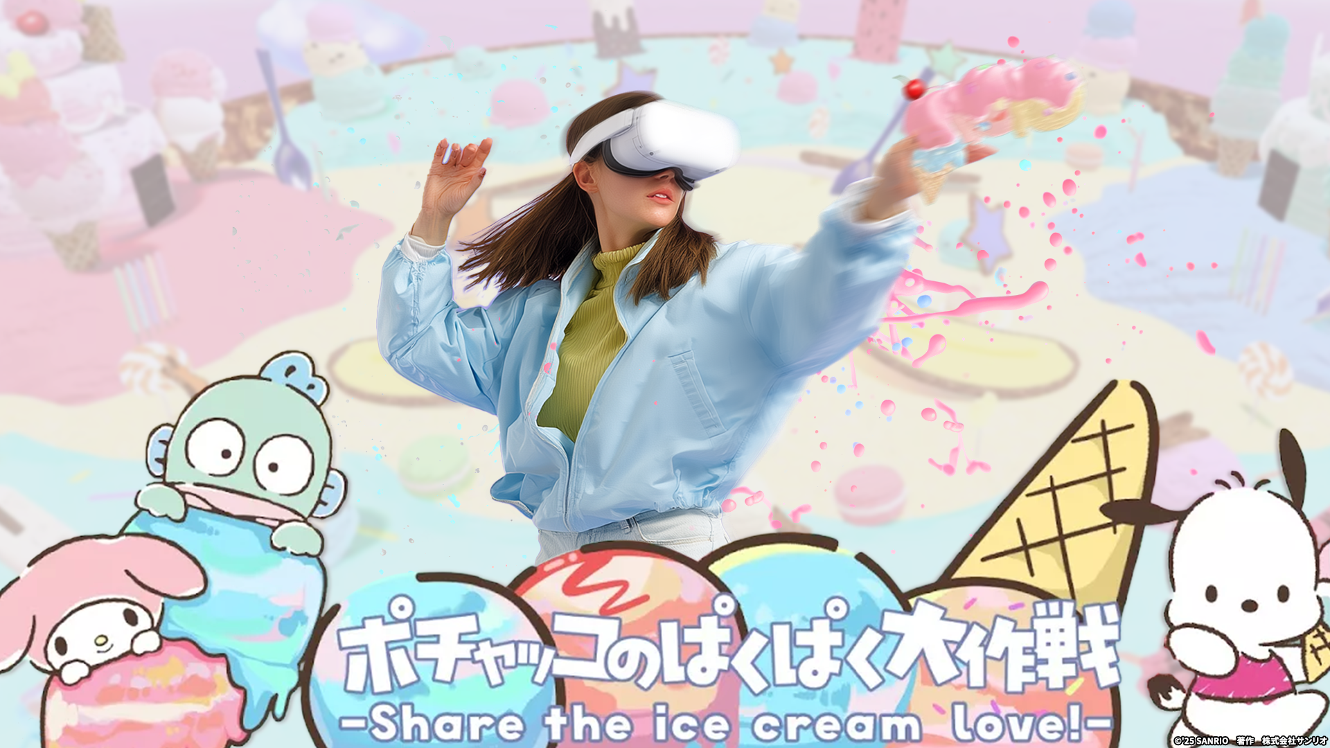 「ポチャッコのぱくぱく大作戦 -Share the ice cream love!-」の MR版ゲームを実際にプレイしていただけます。可愛くて爽快なアイス投げバトルが、あなたの目の前で繰り広げられます。