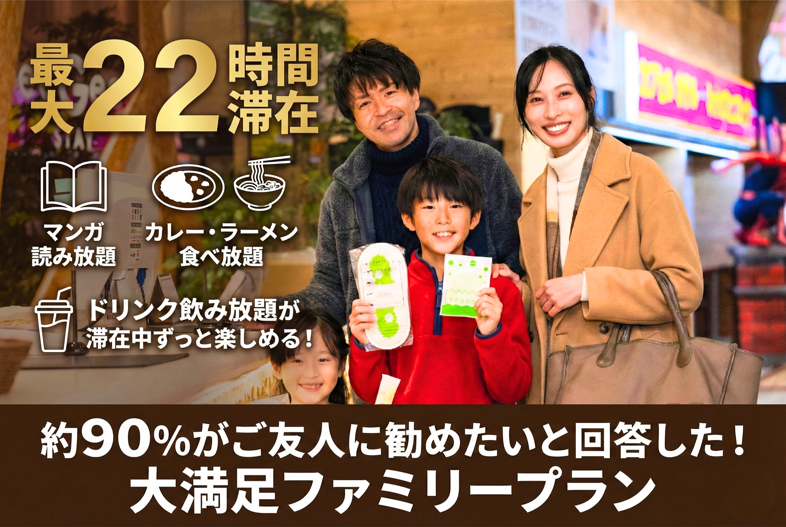 今回は、関東近郊の家族連れをターゲットに、「多様化する旅行ニーズに応え、冬休み期間の宿泊費を抑えつつ特別な体験をしたい」というニーズに応えるため、ネットカフェエリアを活用した特別なファミリープランを提供いたします。