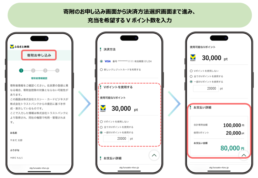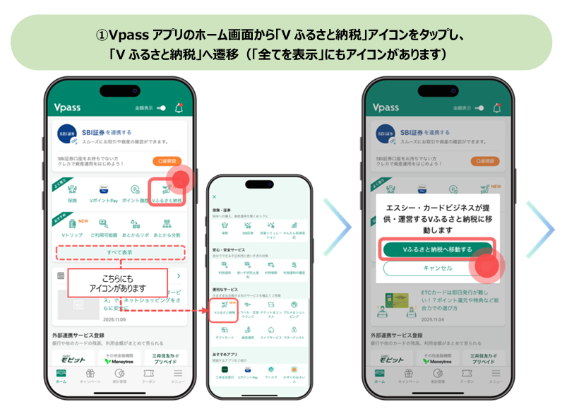 三井住友カード株式会社(本社:東京都江東区、代表取締役 社長執行役員 CEO:大西 幸彦、以下「三井住友カード」)と株式会社エスシー・カードビジネス(本社:東京都港区、代表取締役社長:沢田 修、以下「エスシー・カードビジネス」)は、エスシー・カードビジネスが運営するふるさと納税ポータルサイト「Vふるさと納税」において、三井住友カードの会員向けWEBサービス「Vpass」会員さまがVポイントを寄附金額に充当してご利用いただける機能を追加したことをお知らせします。これにより、Vポイントの使い道が広がり、「Vふるさと納税」での寄附がより便利でお得になります。