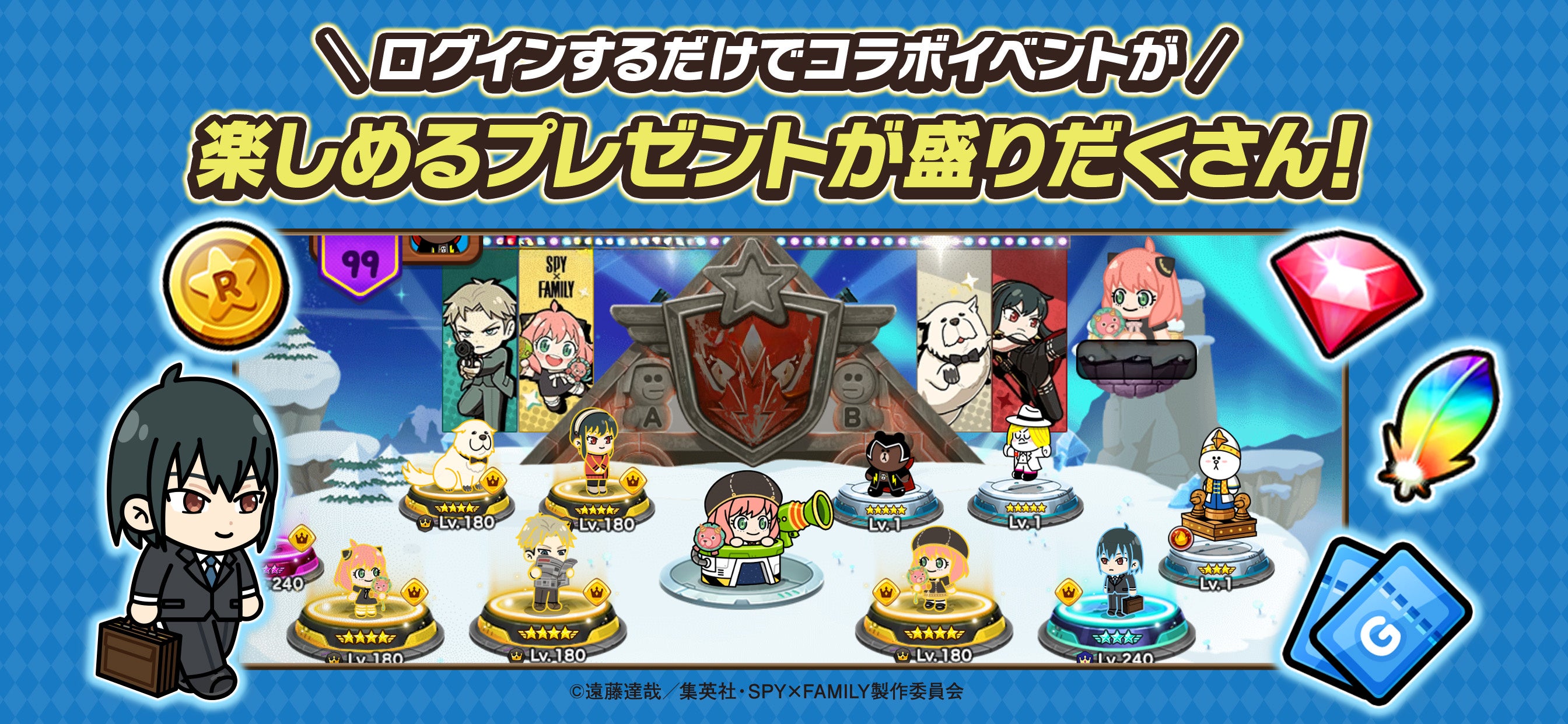 本コラボレーションでは、TVアニメ『SPY×FAMILY』から「ロイド」「アーニャ」「ヨル」「ボンド」「ユーリ」がコラボ限定のレンジャーとして登場するほか、コラボ限定のLINEスタンプを配信します。さらに、コラボスペシャルステージ「SPY×FAMILY惑星」も開催します。