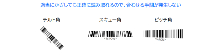・チルト角、スキュー角、ピッチ角に対しても読取誤読ゼロ(自社テスト)