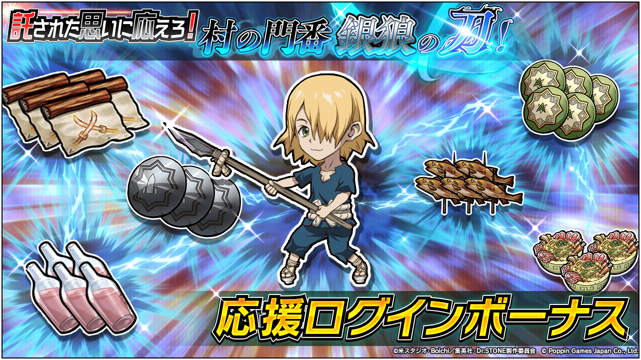 ポッピンゲームズジャパン株式会社は、AppStore/GooglePlayで配信中の『Dr.STONE バトルクラフト』にて新イベント&新ガチャを開催したことをお知らせいたします。
