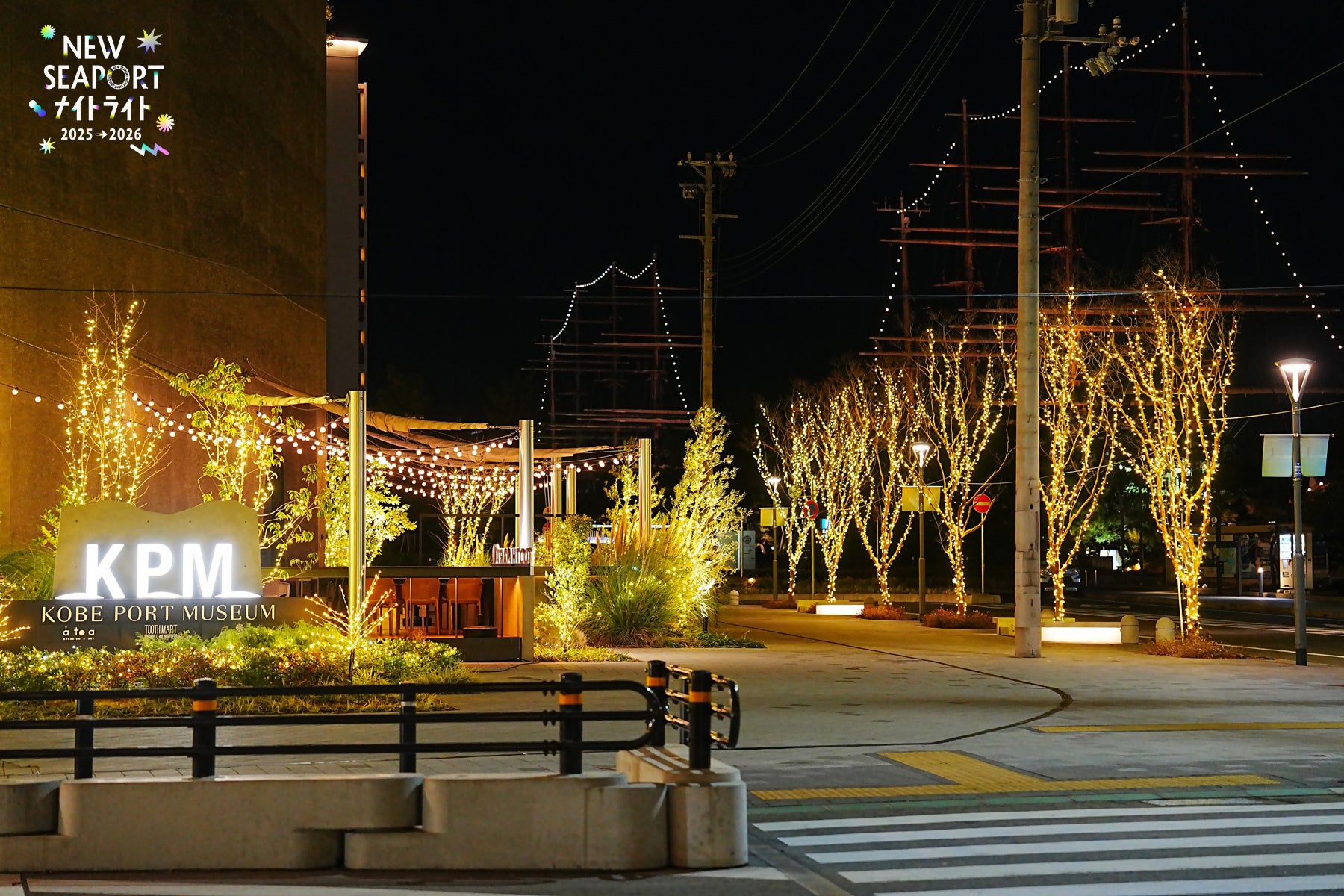 昨年よりも範囲を拡大した街路樹イルミネーションに加えて、神戸ポートミュージアム周辺には高さ約8mの巨大ツリーが登場。2025年4月に開業したTOTTEIも新たに加わります。
