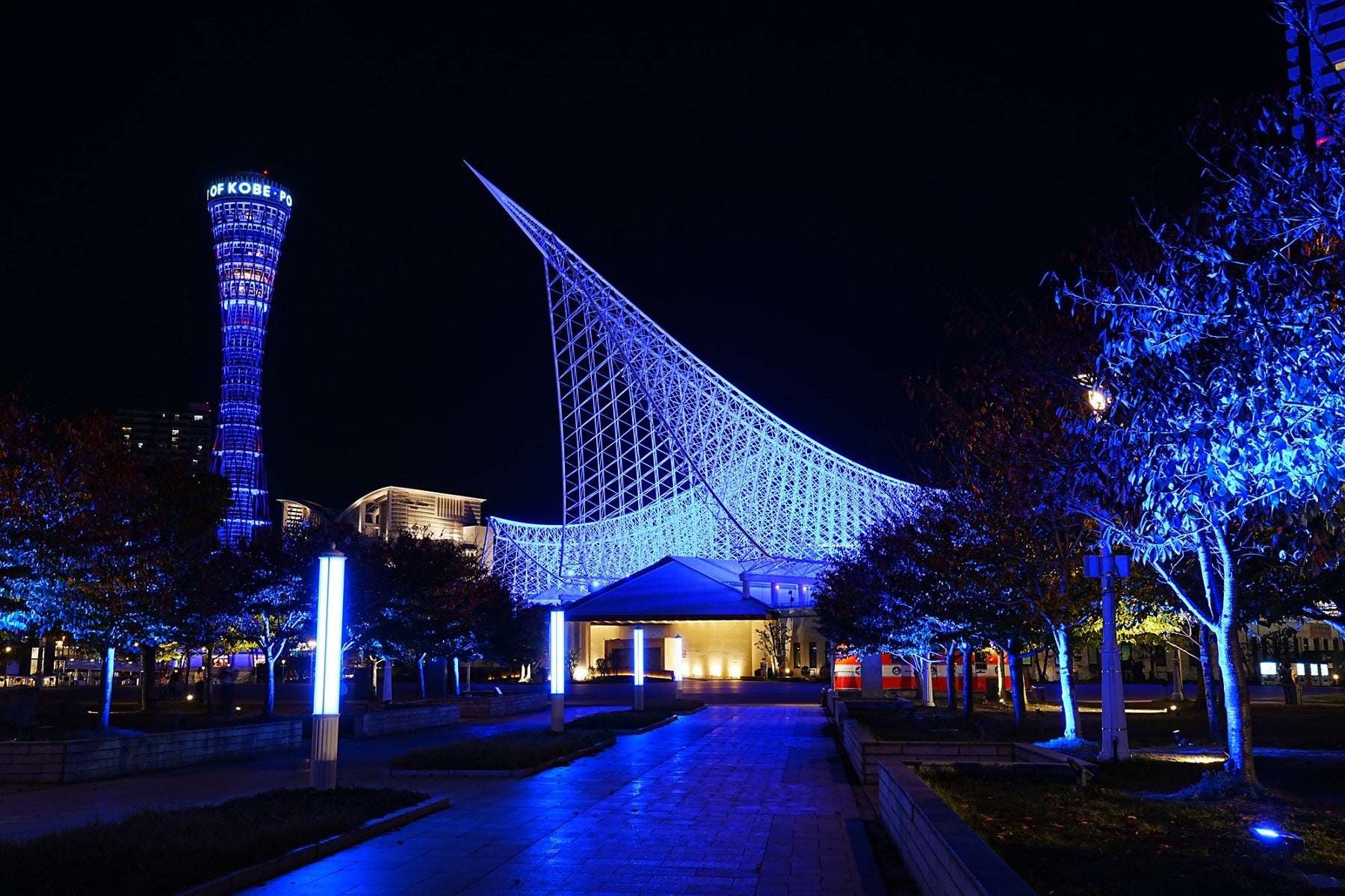 期間中、神戸ポートタワー、神戸海洋博物館、BE KOBEモニュメント等、メリケンパークが特別ライトアップ。会場全体が青と白の幻想的な光に包まれます。