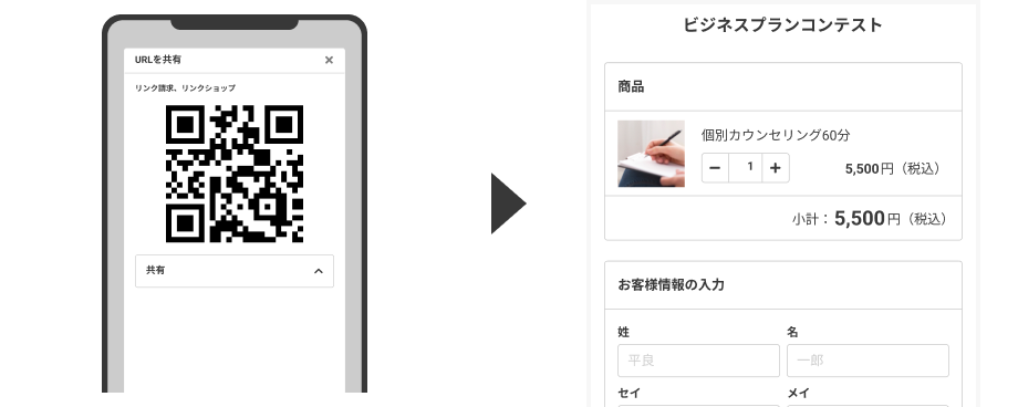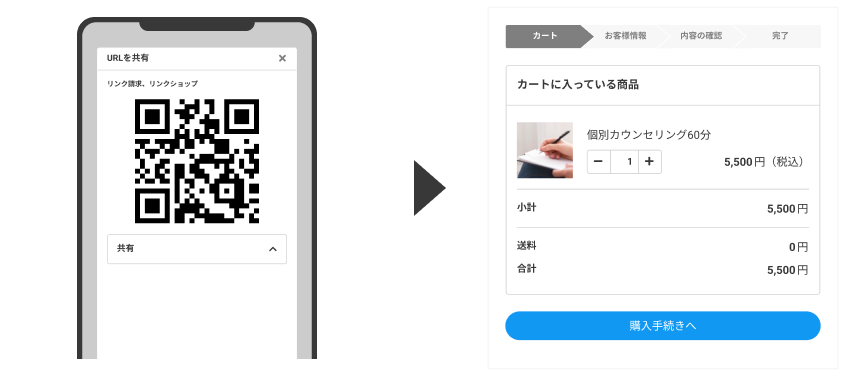 ペライチの機能として提供している「かんたん決済」シリーズを、「ラクスルPay」のユースケースに合わせて、サービス化しています。カートリンクや請求リンクなど、個人や中小事業者の販売状況に合わせて販売機会を逃さない工夫がされています。